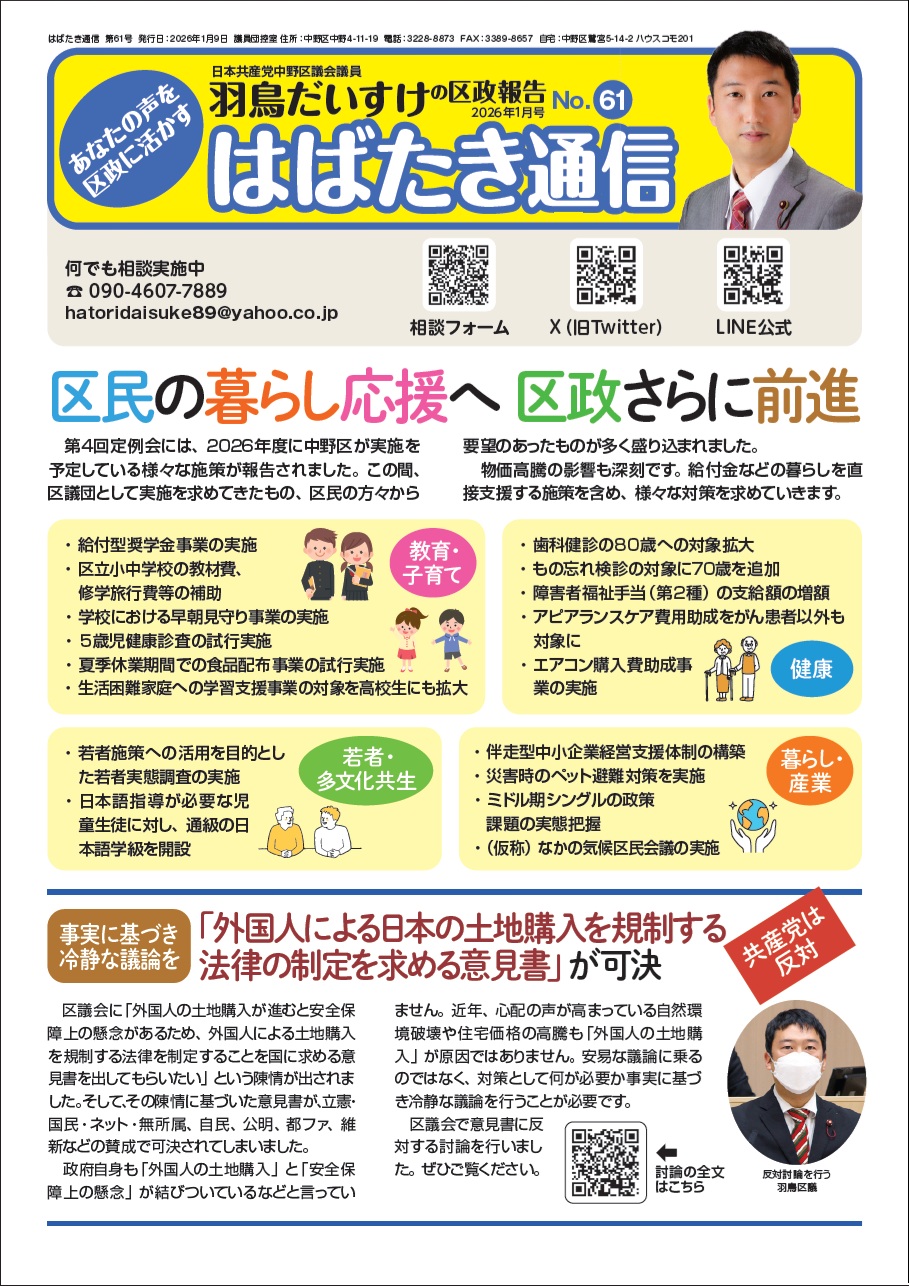 はばたき通信第61号を発行しました